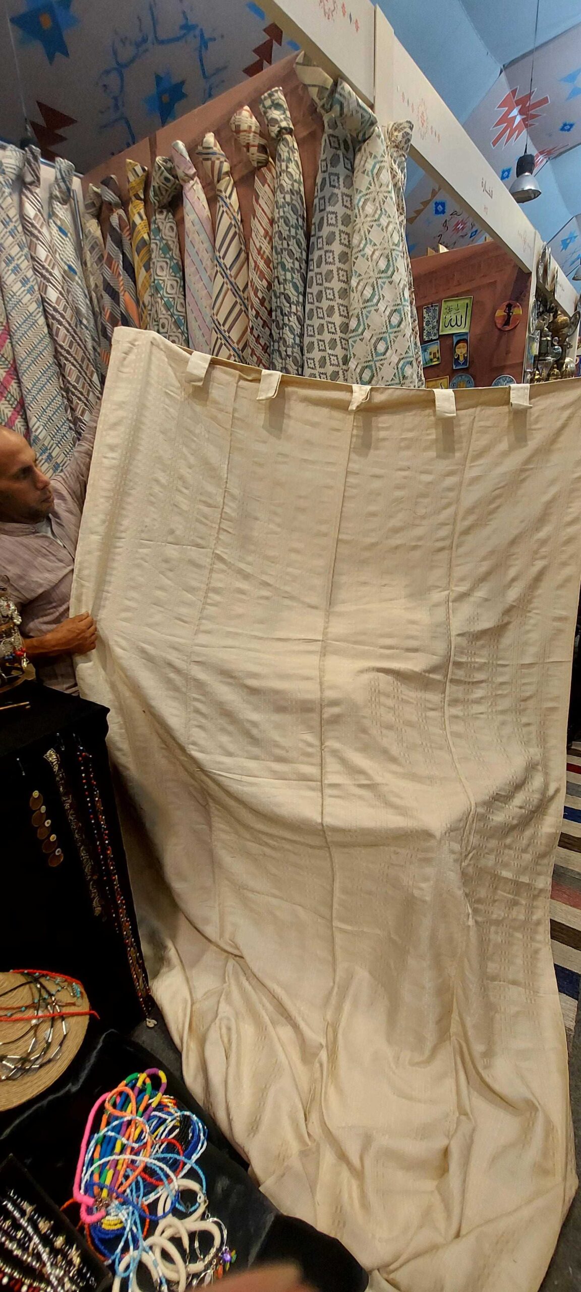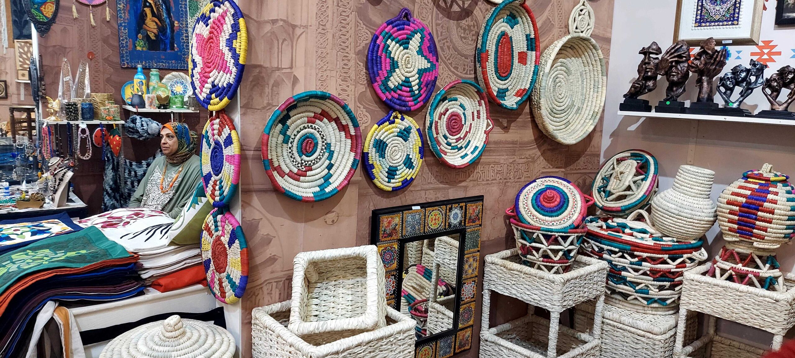 Textiles tejidos a mano con esmero, que exhiben patrones intrincados y colores vibrantes que reflejan el arte atemporal de Egipto. Elaborados con fibras naturales de alta calidad, estos piezas aportan calidez, autenticidad y elegancia a cualquier espacio o atuendo.